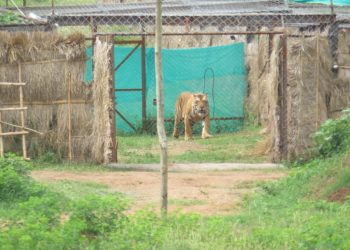 Bantala: Translocated Royal Bengal Tiger (male) from Kanha Tiger Reserve which has been housed in an enclosure in Satkosia tiger...