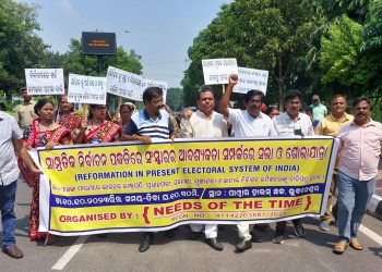 Members of 'Needs Of The Time' hold rally in Bhubaneswar demanding reforms in present electoral system of India ...