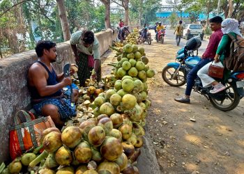A buyer purchases ice apples near Ring Road in Cuttack Boys enjoy in Mahanadi waters amid ongoing heatwave...