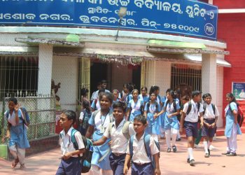 Students of Capital Girls' High School at Unit-II, Bhubaneswar head back home after completion of morning classes that began today...