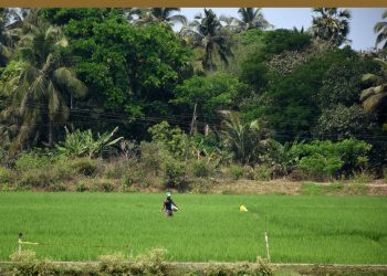 A farmer fertilises rice field near Puri-Mangalpur road Grey cranes rest atop a tree near Puri-Mangalghat bypass road ...