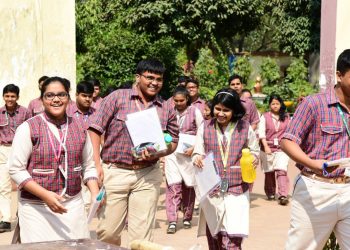 Students come out from Kendriya Vidyalaya No.1, Bhubaneswar after completion of the CBSE Class X Board Exams Members of the...