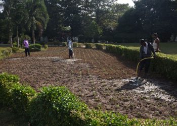Gardeners water plants at IG park, Bhubaneswar Governor Ganeshi Lal inaugurates Ekamra Vatika at Unit-III Kharabela Nagar in Bhubaneswar,...