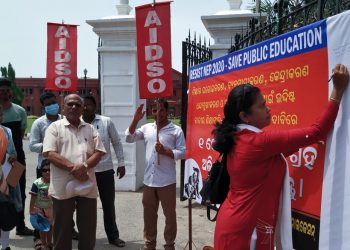 AIDSO conducts signature campaign in front of Ravenshaw University in Cuttack protesting against National Education Policy-2020 Minister Padmanabha Behera...