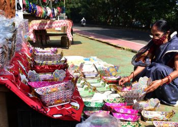 Ahead of Kartika Purnima festival, customers enquire about boat prices at Unit-I market in Bhubaneswar A man prepares boats...