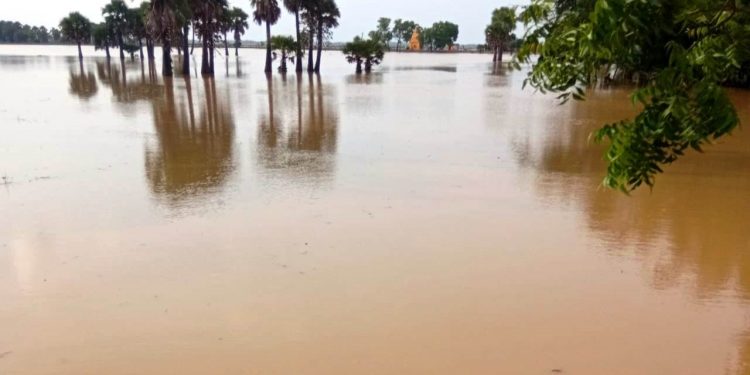 Aradi: With the forecast of heavy rains in the next 24 hours, the situation in 35 villages that are already reeling under floods from the Baitarani river in Chandbali, Dhamnagar and Tihidi blocks of Bhadrak district, is most likely to deteriorate. Reports said, floodwater from Baitarani river has been playing havoc at Aradi, Olaga, Chandpur and Sundarpur panchayats under Chandbali block; Palasahi and Gaipur under Dhamnagar block and Shyamsundarpur panchayat under Tihidi block for the last two days. Thousands of people have been marooned with water stagnant in houses, while roads and streets remain submerged.