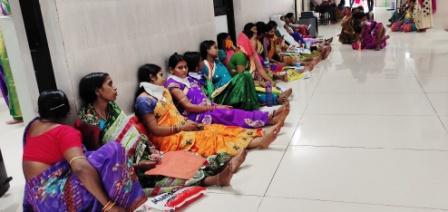 Women at Angul DHH wait for their turn for ultrasound, while social distancing goes for a toss, Tuesday