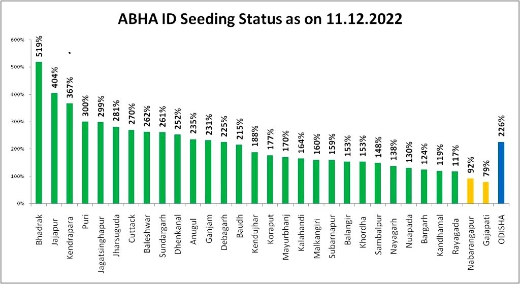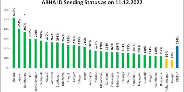 A special campaign was launched on November 12 and continued for a month till December 12 during which people registered their names for ABHA. Reports said that Bhadrak district had received a target of 89,782 ABHA cards but due to sincere efforts of the health workers around 4,65,177 ABHA cards were prepared during the period. The achievement has garnered 519 per cent success for the district, chief district medical officer (CDMO) Dr Santosh Kumar Patra said.