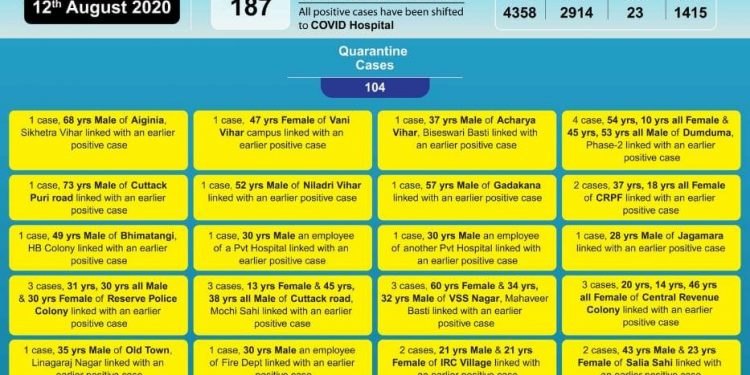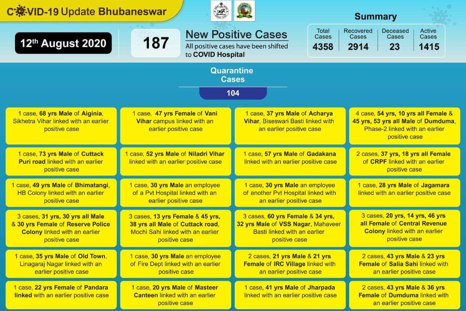 Primary contacts & nearby houses are being quarantined, sanitised & will be under active surveillance. pic.twitter.com/REmdlybiFg— BMC (@bmcbbsr) August 12, 2020