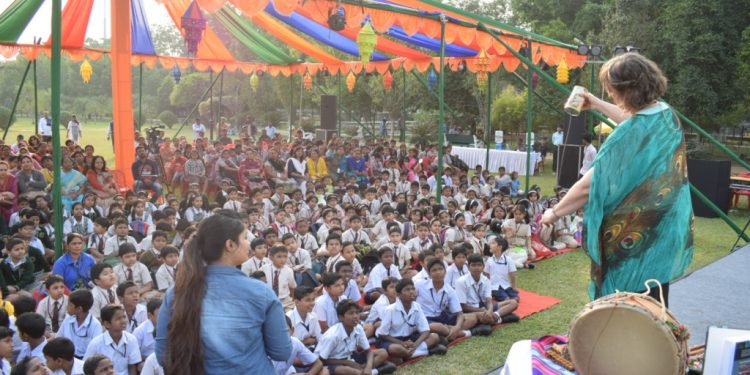 Paula Martin, a storyteller from Argentina, kick started the proceedings by delighting children from several schools with her musical and bilingual folk tales. She used several instruments such as Charanga, Quena and Sikus among others to make her act more engaging. She narrated some stories from a book Pachamama Tales: Folklore from Argentina, Bolivia, Chile, Paraguay, Peru, and Uruguay, which she has co-authored.