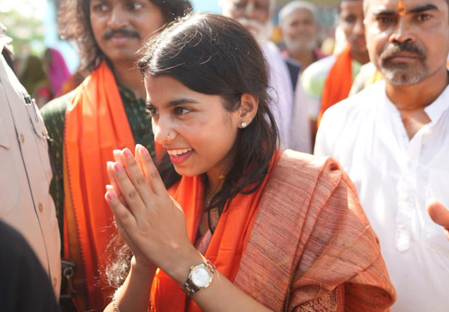 Thakur, who is making her electoral debut, is leading with 4,113 votes, the ECI trends showed at 10.40 a.m.
