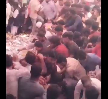 People present at the event scrambled over each other to get their hands on the biryani. Some ran after the cans, while others fell in the scuffle. The situation quickly devolved into chaos. Those present recorded the entire incident on their mobile phones, which is now rapidly going viral on social media.