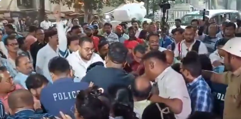 Kolkata: Tension flared outside the office of West Bengal CEO Monday as members of the BLO Adhikar Raksha Committee staged a demonstration, raising slogans and attempting to breach police barricades just as BJP leader Suvendu Adhikari and several MLAs arrived for a scheduled meeting with EC officials.