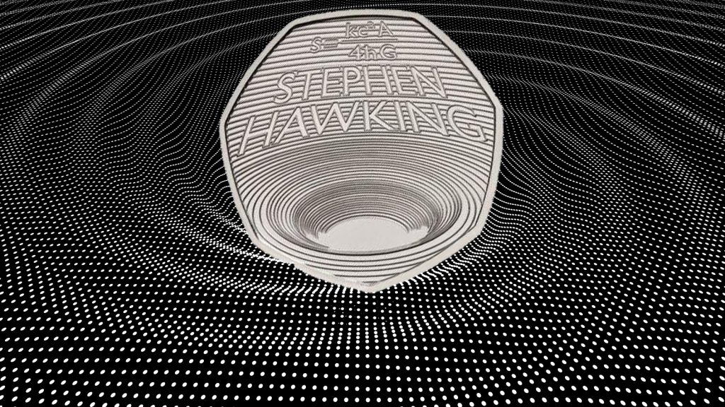 “Hawking, at his playful best, invites the audience to contemplate peering into a black hole before diving in. I wanted to fit a big black hole on the tiny coin and wish he was still here chortling at the thought,” she said.