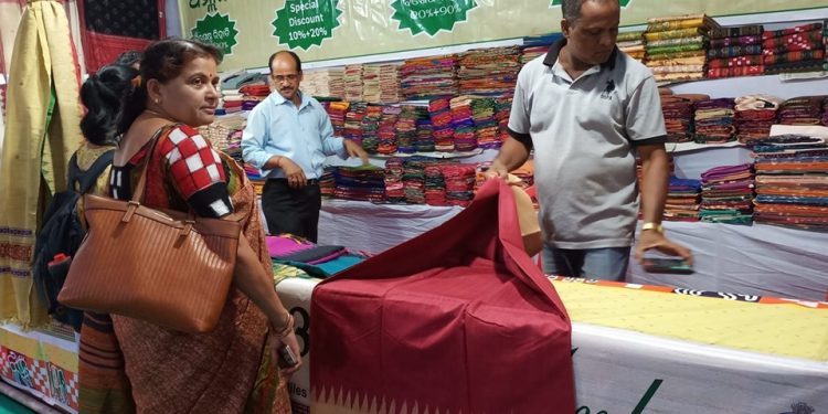 The exhibition showcased 33 stalls exhibiting various hand-woven merchandise including saree, dress material and Chunri among others.