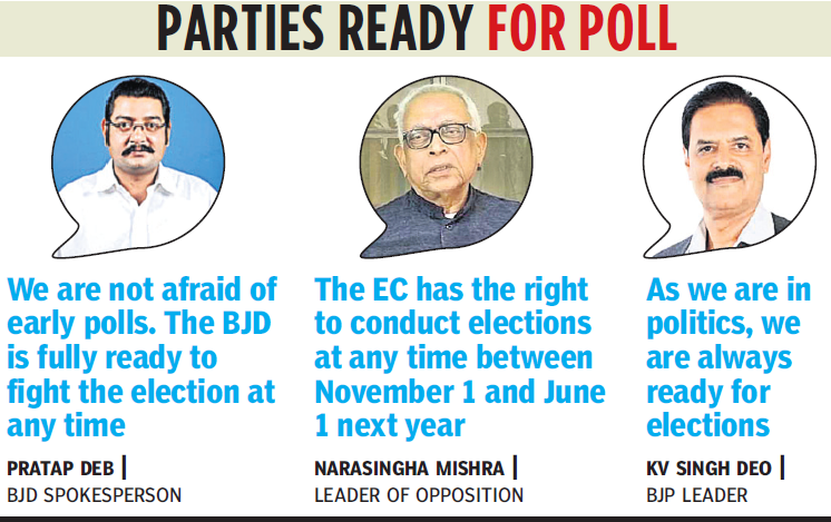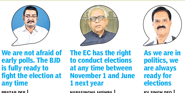 “The EC has the right to conduct elections at any time between November 1 and June 1 next year. If the Modi government dissolves Parliament, the state government may recommend dissolution of the Assembly,” Leader of Opposition Narasingha Mishra said