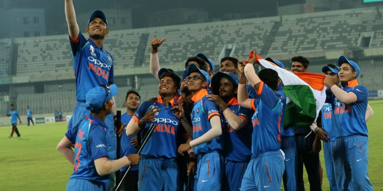 India colts take a groufie after winning the Asia Cup final in Mirpur, Sunday
