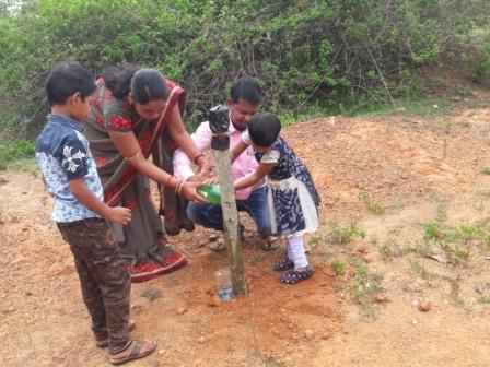 Dillip Kumar Sahoo, his wife and two children, has set an example by planting eight banyan saplings to celebrate their eighth wedding anniversary.