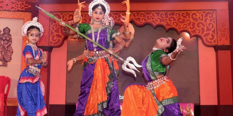 Girls perform a dance on the concluding day of Ananadapur Mahotsav in Keonjhar