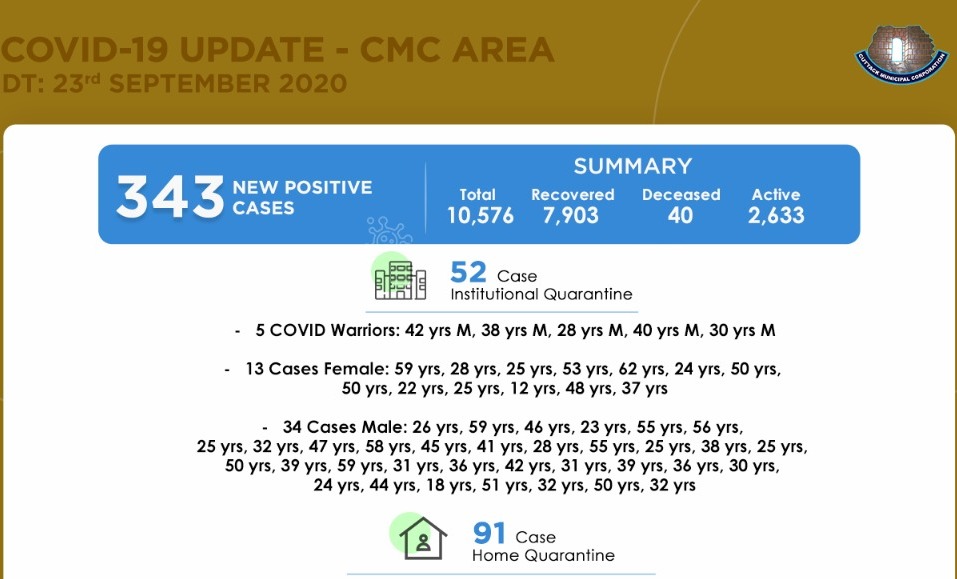 Cuttack: As many as 343 new COVID-19 cases were detected under Cuttack Municipal Corporation (CMC) limits in last 24 hours, CMC said Wednesday.