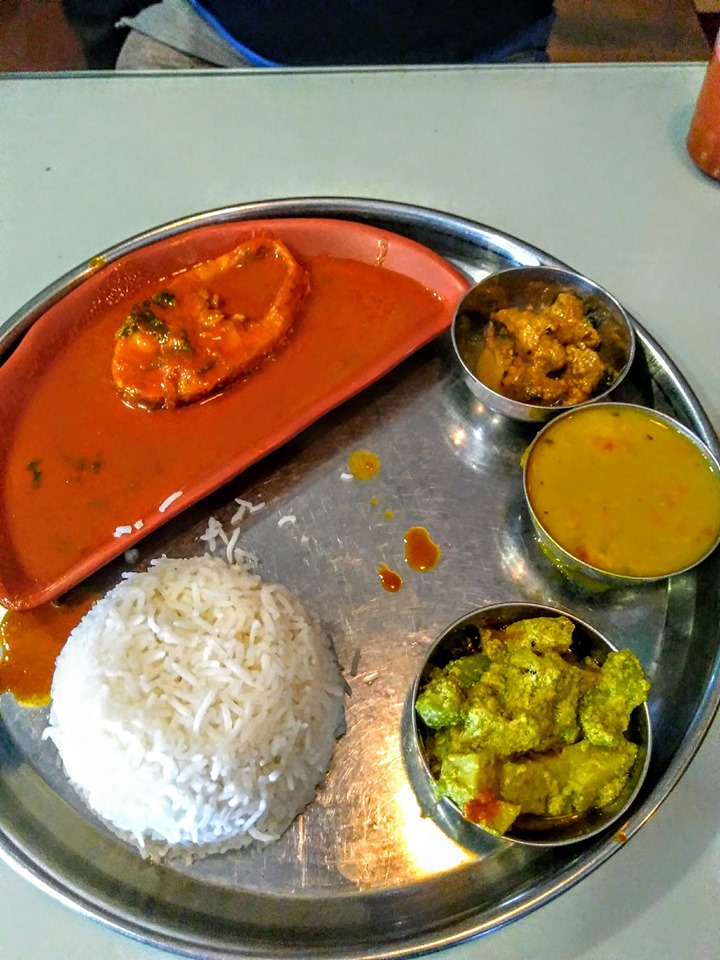 The summer-time cuisine consists of cooked rice fermented in water. The dish is then mixed with curd and served with ‘Aloo Bhaja’, ‘Badi Chura’ and ‘Saga’.