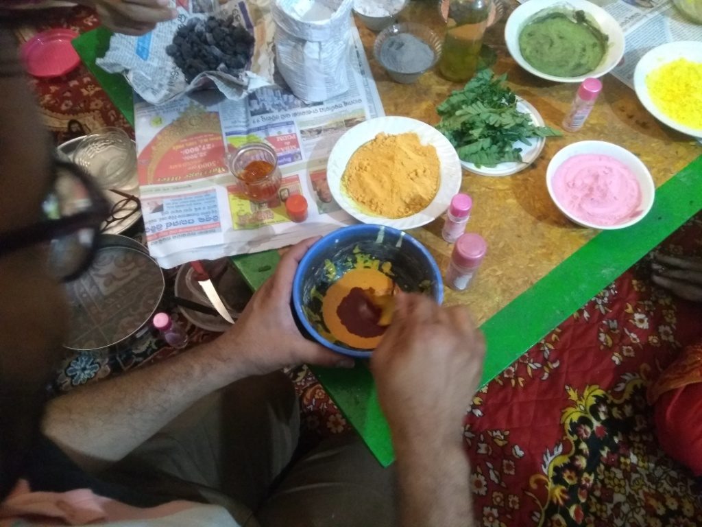 A participant mixes ingredients to make natural colour
