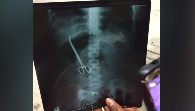This negligence by the doctors at the government-run super-speciality hospital came to light Saturday when an X-ray revealed that a pair of forceps was embedded in the stomach of Maheshwari Chowdary.