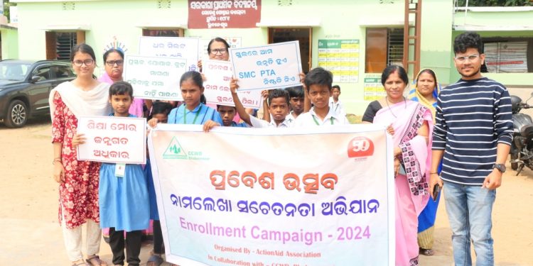 Bhubaneswar: To put the dropout slum children back in government schools, ActionAid, in collaboration with Centre for Child and Women Development (CCWD) and Government Primary School Second Postal Colony, conducted an enrolment drive on the occasion of Pravesh Utsav, Thursday. The programme was organised at Patharabandha slum under ward 17 of Bhubaneswar Municipal Corporation (BMC).