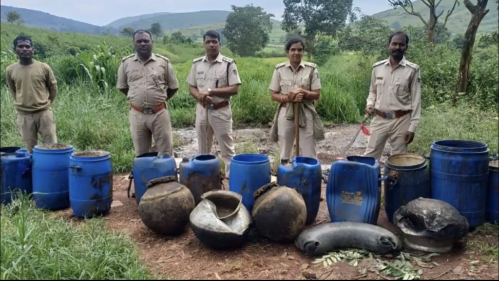 Officials suspect large-scale production was taking place in hidden locations in forested areas near Dengajaniguda, with the illicit liquor being supplied to nearby markets.