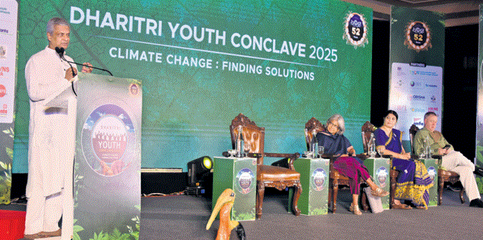 Bhubaneswar: The Dharitri Youth Conclave-2025, organised by the leading Odia daily Dharitri to mark its 52nd anniversary, brought together over a thousand student activists, climate leaders, and environmental enthusiasts at Hotel Swosti Premium here Monday. This year’s conclave focused on fostering collaboration between environmental leaders and the youth, providing a space for discussions on climate resilience, sustainable development, and community-driven conservation.