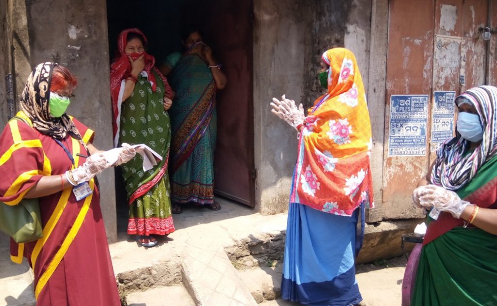 Healthworkers conduct door-to-door survey at Sutahaat area in Cuttack, Friday