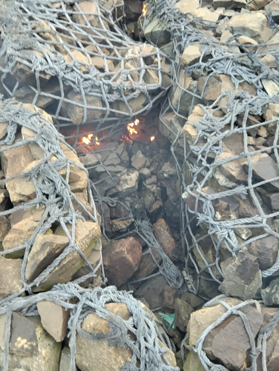 It is suspected that picnickers may have recklessly discarded a burning cigarette, which could have led to the fire. As a result, a section of the high-tensile ropes used over gabion boxes to hold granite stones caught fire and was damaged.