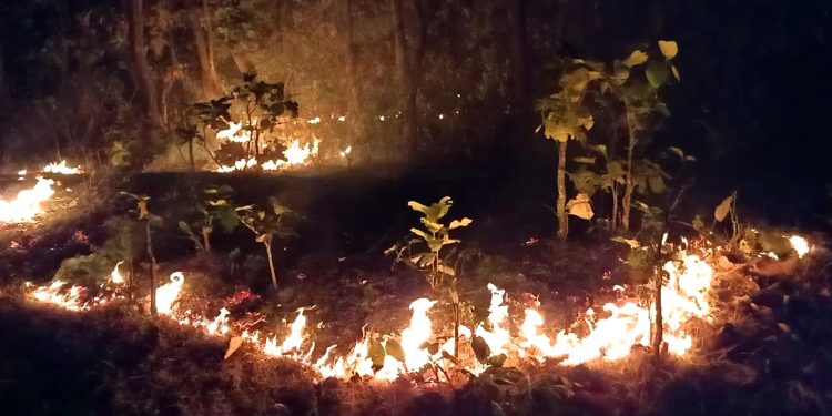 Bhanjanagar/Boudh: Fires have been raging in various forests under North Ghumusar forest division in Ganjam district for the last 9 days while the forest department has been struggling to douse the blaze.