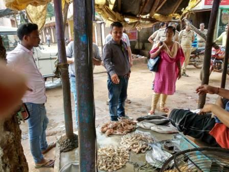 Simultaneous raids were carried out at Totapada godown, fish markets and outlets in Khordha town, Mukundaprasad and nearby areas.