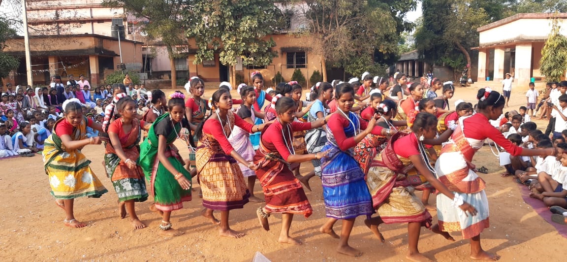 Students during a cultural programme as part of annual sports of Sorada Nodal school in Nuagaon of Sundargarh district