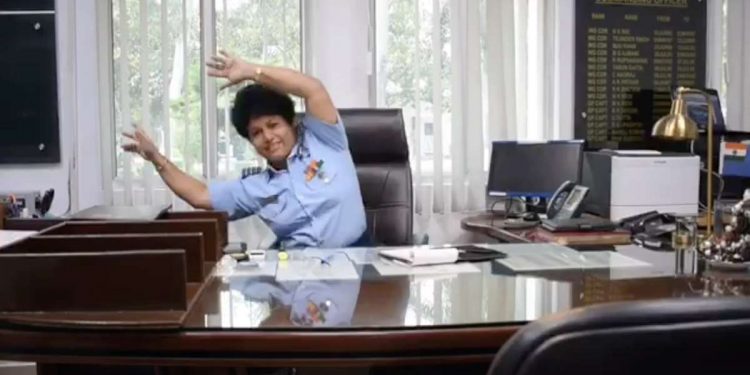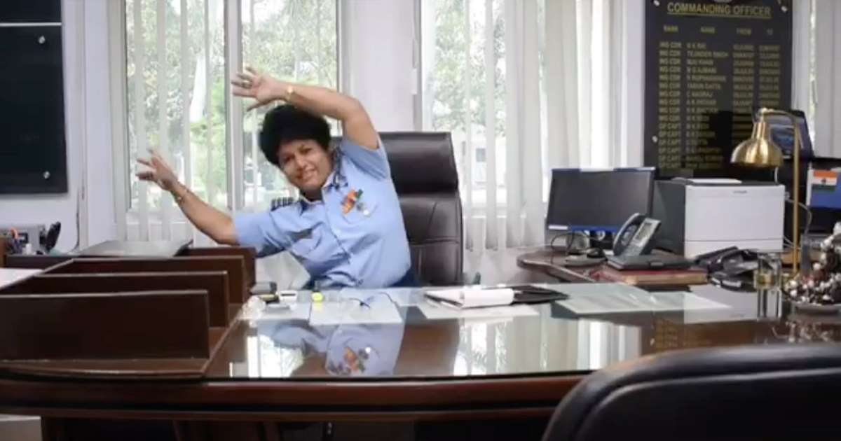 The video, said to be shot at 12 Air Force Hospital at Gorakhpur in Uttar Pradesh, shows a lady Group Captain leading the dance party.