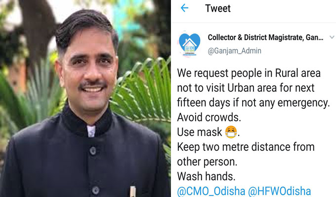 Berhampur: Concerned over the increasing cases of coronavirus in Ganjam district, Collector Vijay Amruta Kulange urged rural people in the district to not enter into urban areas of the district for the next 15 days.