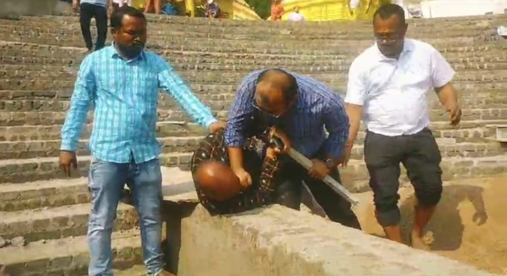 A video of the incident has gone viral on social media. The incident happened when Guru visited ‘Harishankar’ Shrine to supervise the government work being done under the 5T initiative. It has been alleged that Guru complained of sub-standard work and misappropriation of government money.