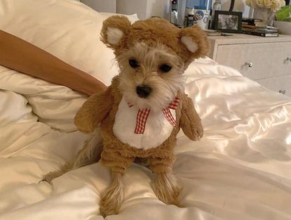 The two adopted the puppy a year ago, calling Oscar their Christmas baby.
