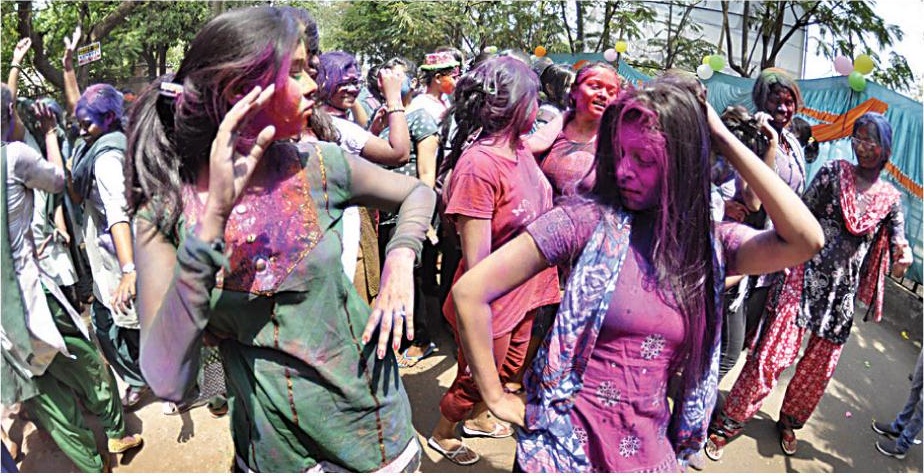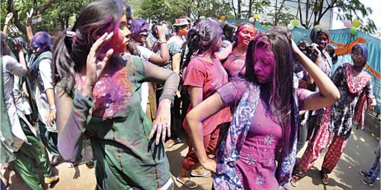 Students enjoying Holi in Cuttack:-
