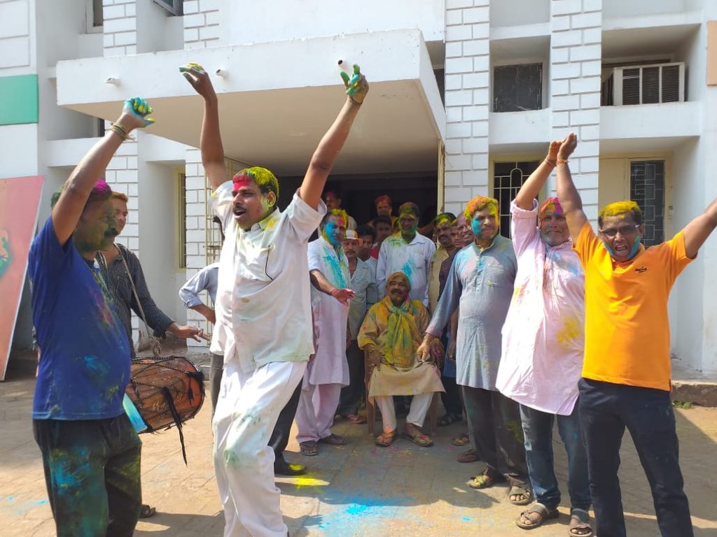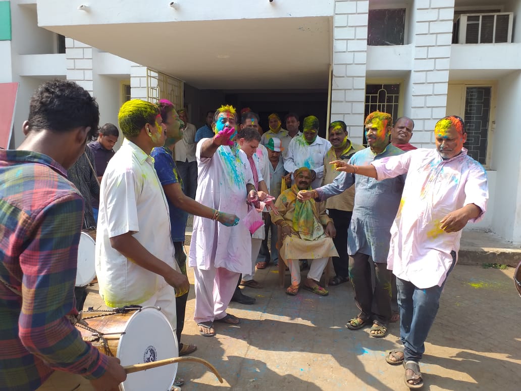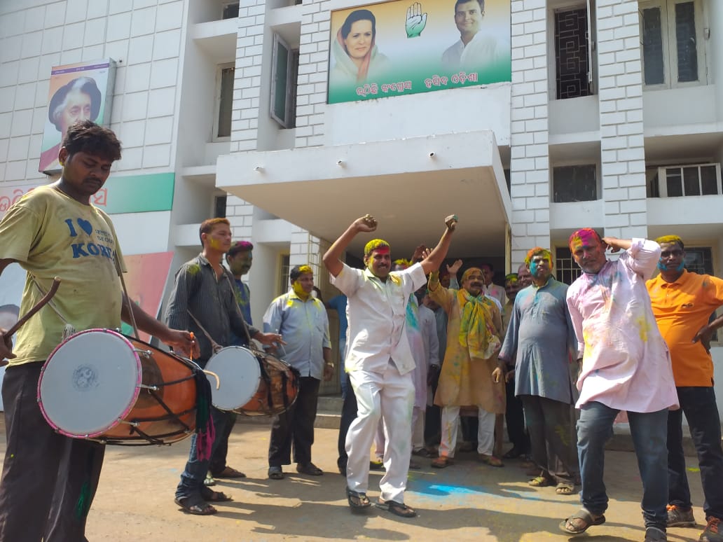 Congress workers have a gala time at the party office on the auspicious occasion of Holi in Bhubaneswar
