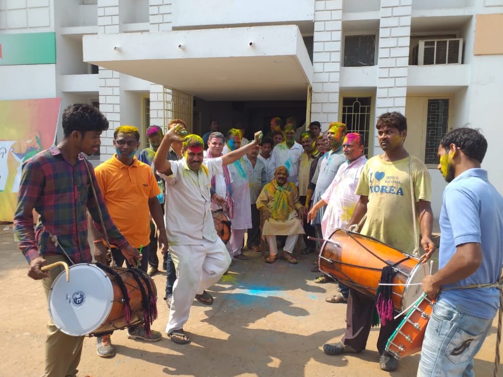 Some Odia film stars and serial artistes were also seen celebrating the festival at some designated places in Bhubaneswar. Similarly near Jayadev Bhawan, journalists and photo journalists enjoyed the festival a lot with smearing ‘Gulal’ on each other.