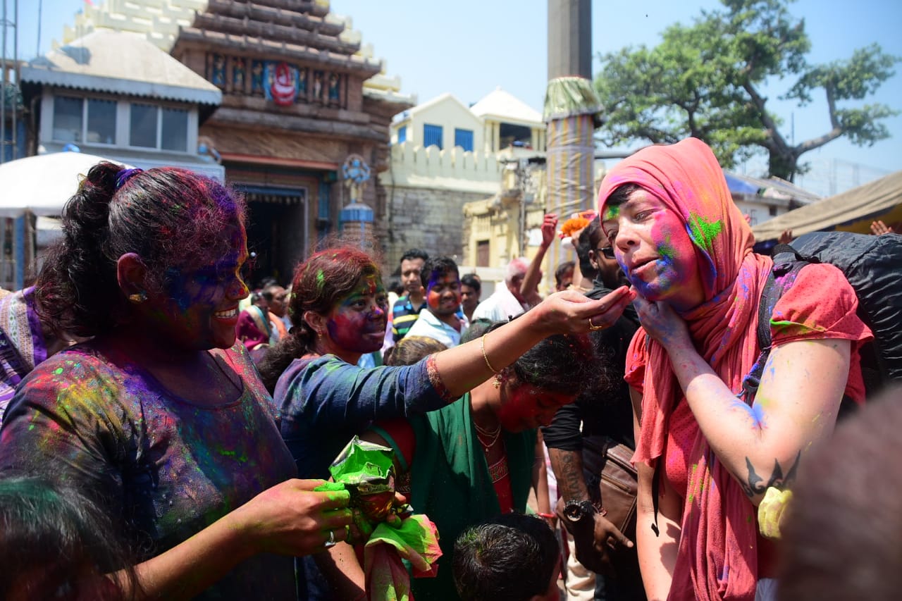 A group of elderly people who were celebrating Holi in the pilgrim city observed, “During holi celebration, synthetic colour should be avoided. We are playing with herbal holi, and asked our children to opt for herbal colours only.” Here and at Konark, some foreign tourists were also seen enjoying the festival. They observed the festival as unique and the experience they had was also equally amazing.