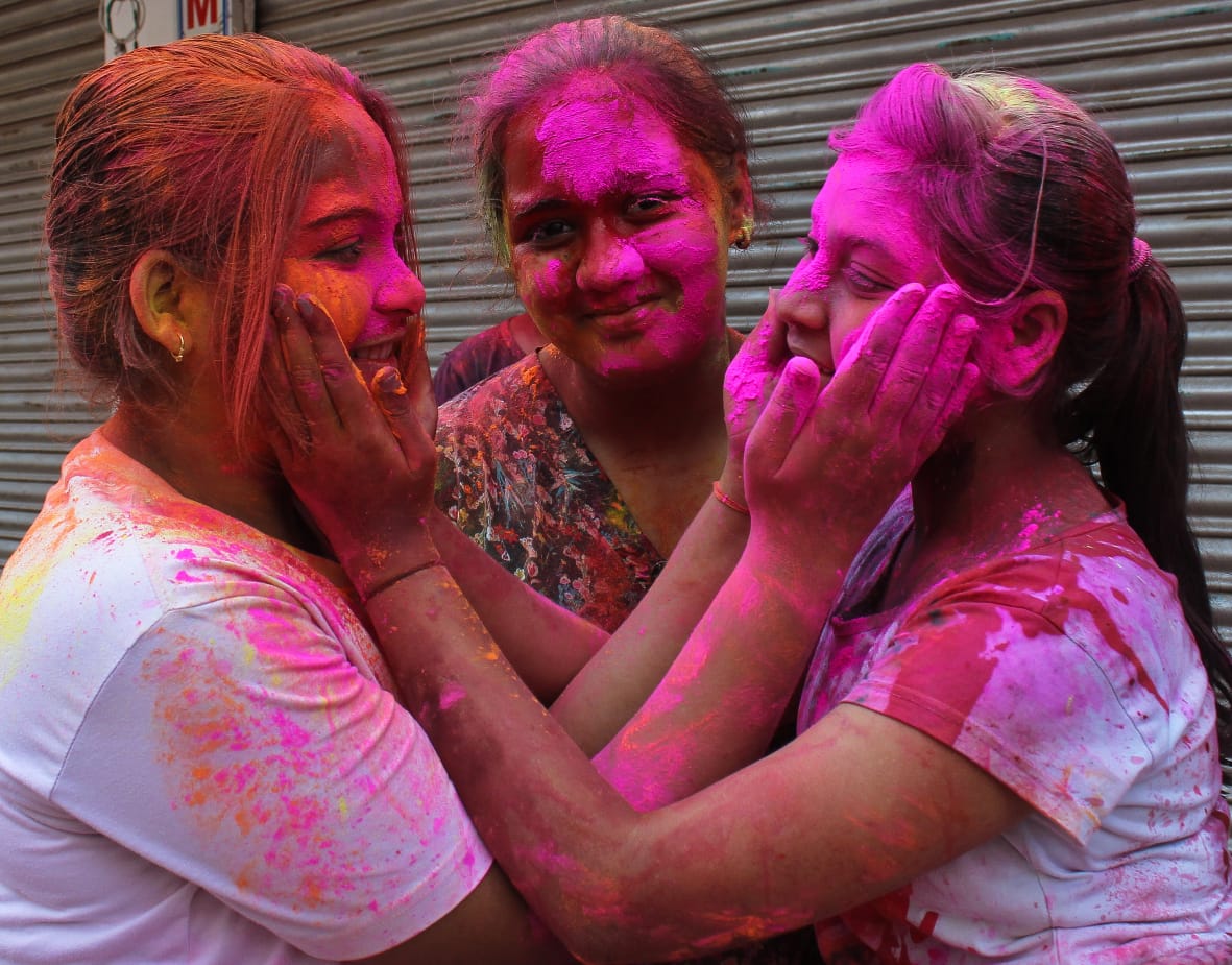 Children were also not left behind in celebrating the festival. They were seen coming out on to streets and opened water guns on one another. Be it be children or the elders, all were so smeared with colours that their faces went beyond recognition.