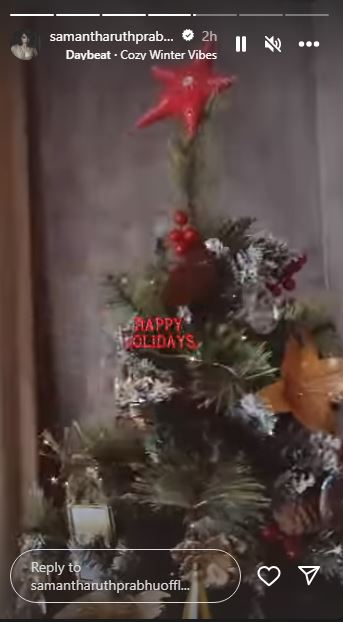 Mumbai: Actress Samantha Ruth Prabhu Wednesday shared some beautiful glimpses of the Christmas decor at her residence, and extended heartfelt greetings to her fans, saying, ‘happy holidays’.