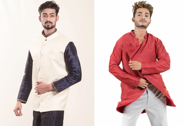 Men are now experimenting a lot more with fun and bright colour palettes. And not just colours, even prints like florals, abstracts and quirky object designs are in this year. Right from pastel safas, floral sherwanis and Buddha print Nehru jackets to pop patchwork shirts and pastel dhoti pants – there are lots of ways in which you can easily re-style your outfits and team them up to suit the occasion.