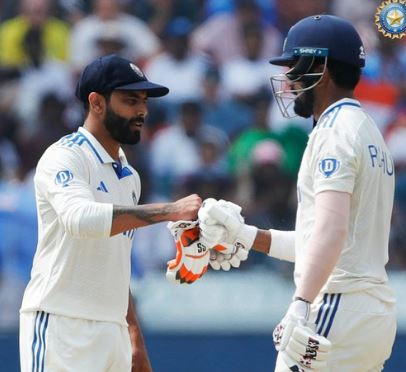 India 1st innings: 436 all out in 121 overs (Ravindra Jadeja 87, KL Rahul 86, Yashasvi Jaiswal 80; Joe Root 4/79).