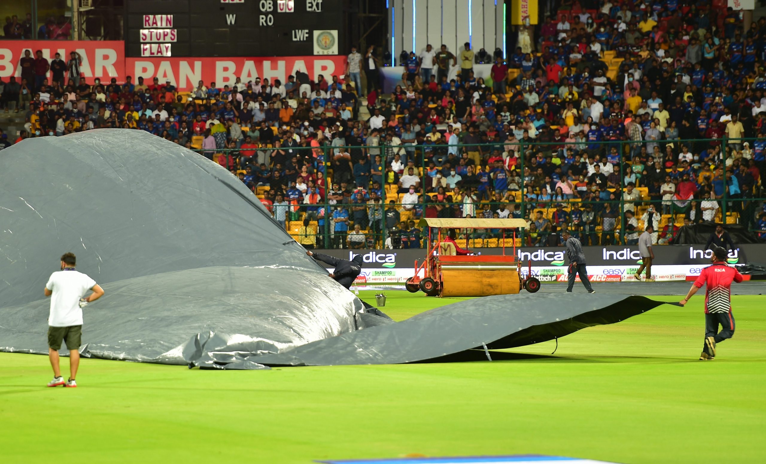 The future of the match was in doubt as it had been raining steadily here since Friday. Even then a large number of spectators had turned to watch up the match. There were forecasts of rains also Sunday and that is exactly what happened.