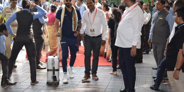 Amidst the fans’ chanting of ‘Viraaaat…Virat’ and ‘Rohiiiittt…Rohit’ as well as ‘Pollaaaardd…Pollard’, the teams entered the hotel at around 1:20pm. The Indian team bus was the first to enter followed by the West Indies’. Rohit Sharma was the first to step out of the bus followed by head coach Ravi Shastri and Ravindra Jadeja. However, it was the all-rounder who entered the hotel building first.