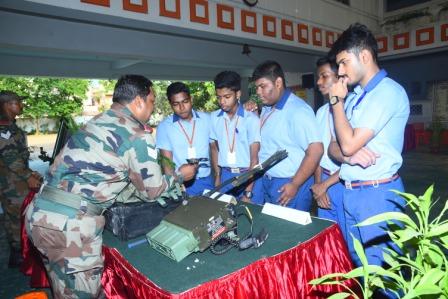 The equipments displayed at the event were Radio Set Star V, Hand Held Radio Set, Binocular and Global Positioning System. The students were mesmerised by the display and took extra enjoyment in holding the weapons and using them, without any real ammunition.